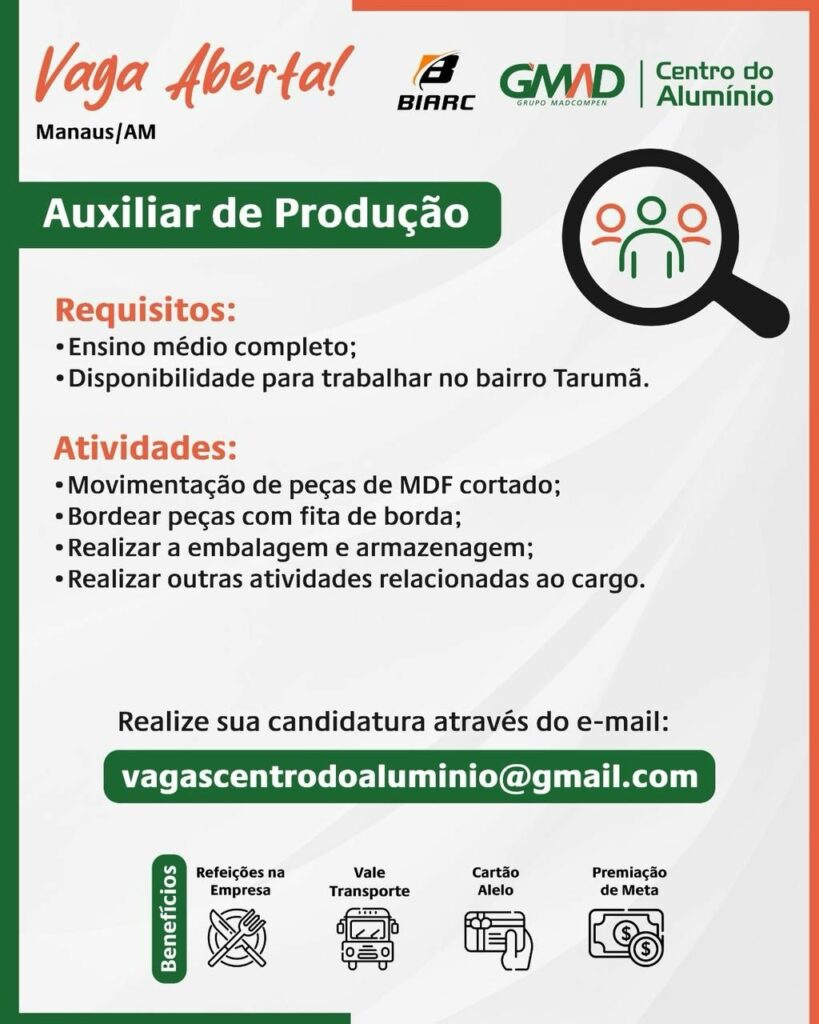 Centro do alumínio seleciona Auxiliar de produção e mais 04 cargos; Envie seu currículo!