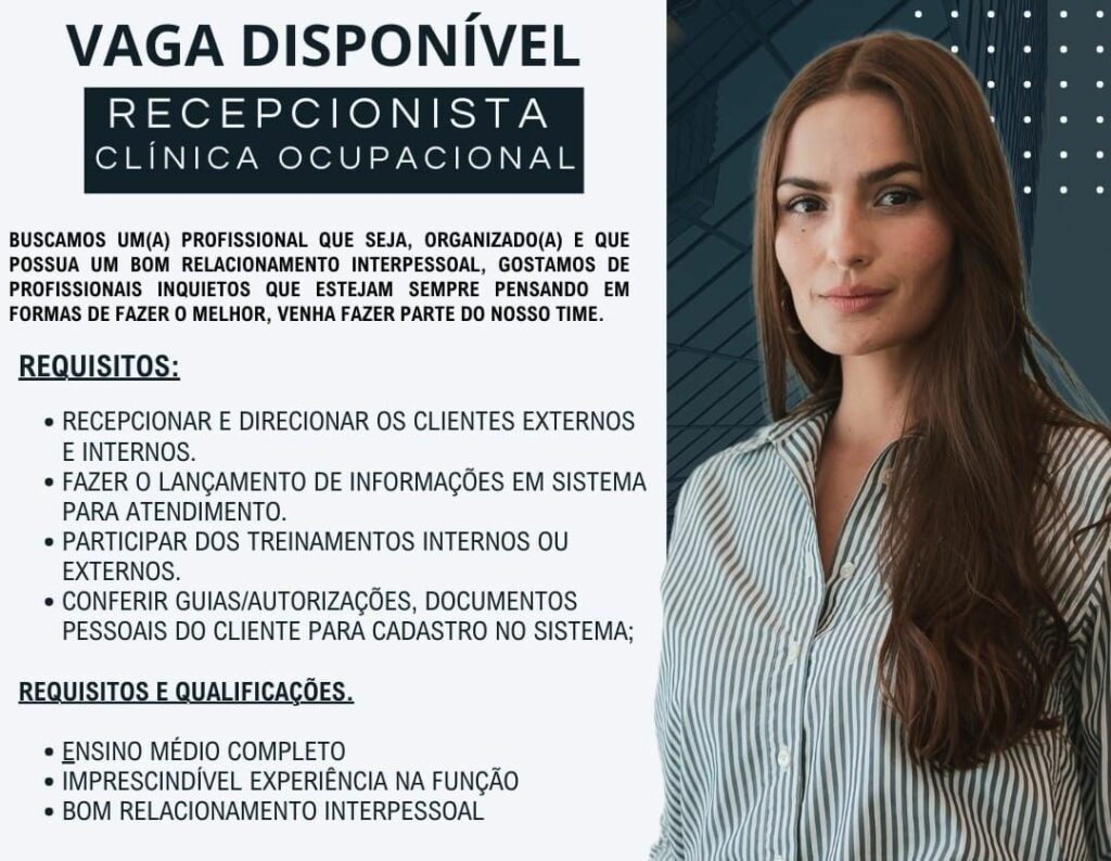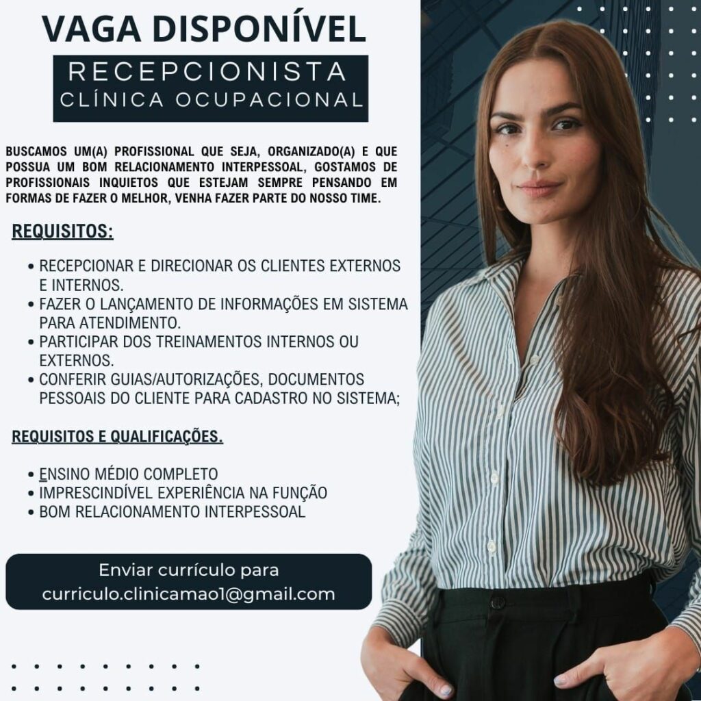 Clínica seleciona Recepcionista; Envie seu currículo!
