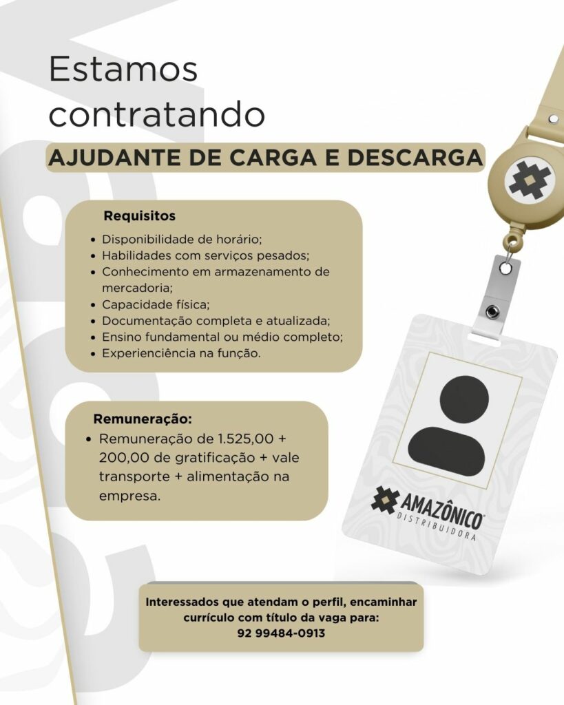 Confira as 08 oportunidades de emprego oferecido pela empresa Amazônico distribuidora; Envie seu currículo!