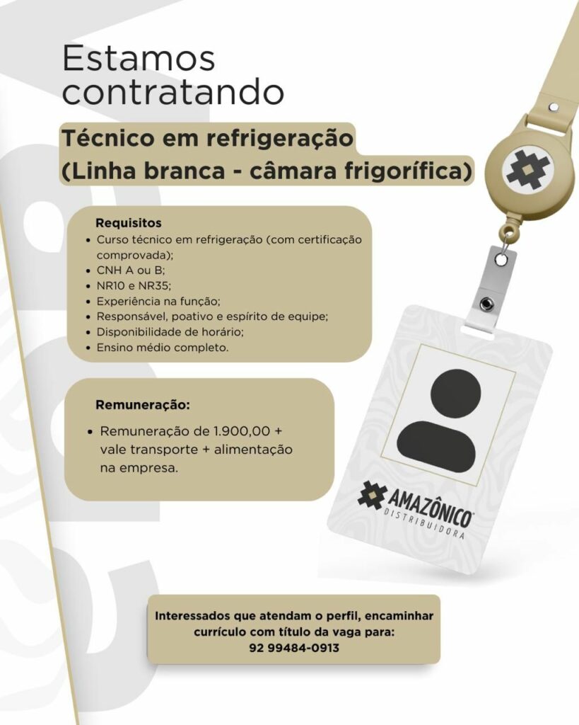 Contrata-se o seguinte profissional Auxiliar técnico de refrigeração; Envie seu currículo!