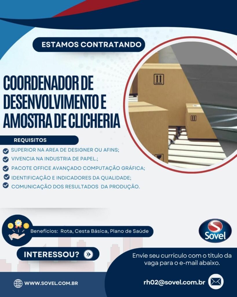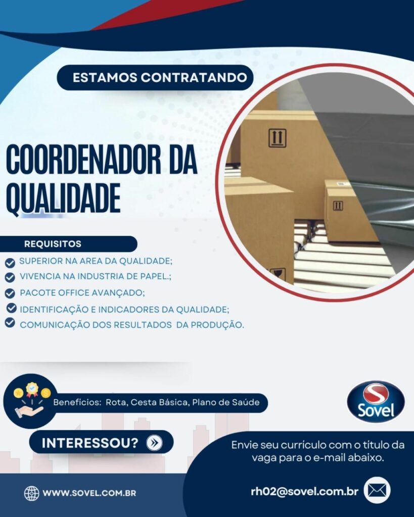 Confira as oportunidades de emprego oferecido pela empresa Sovel