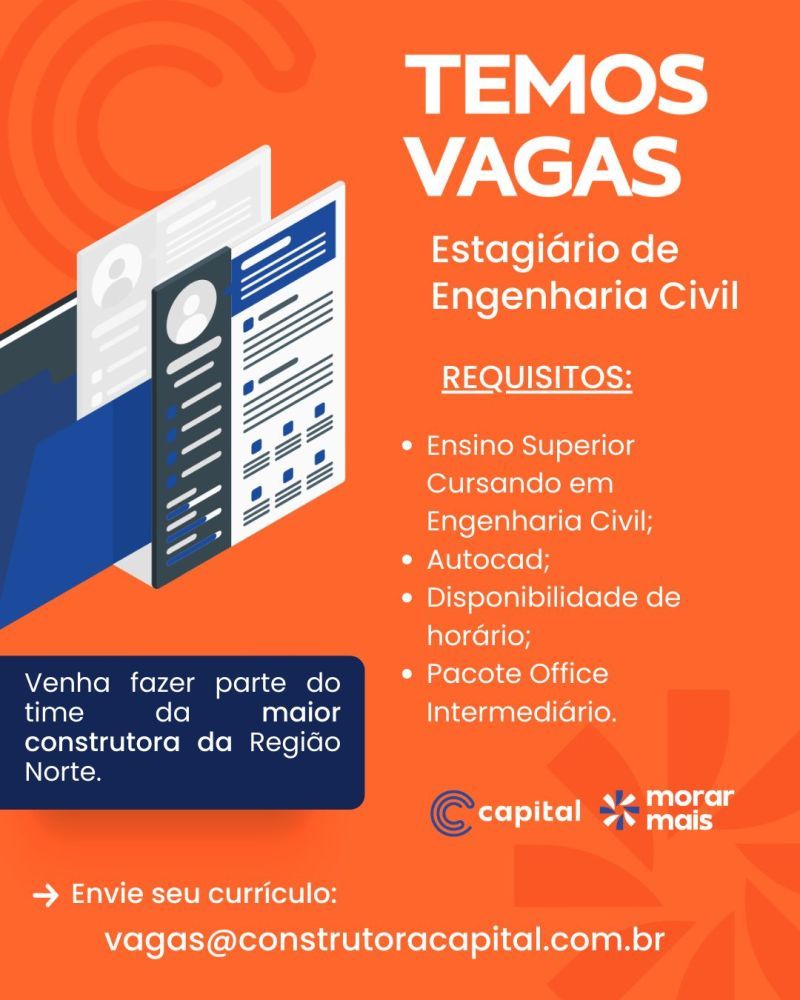 Construtora Capital seleciona Estagiário de Engenharia civil; Envie seu currículo!