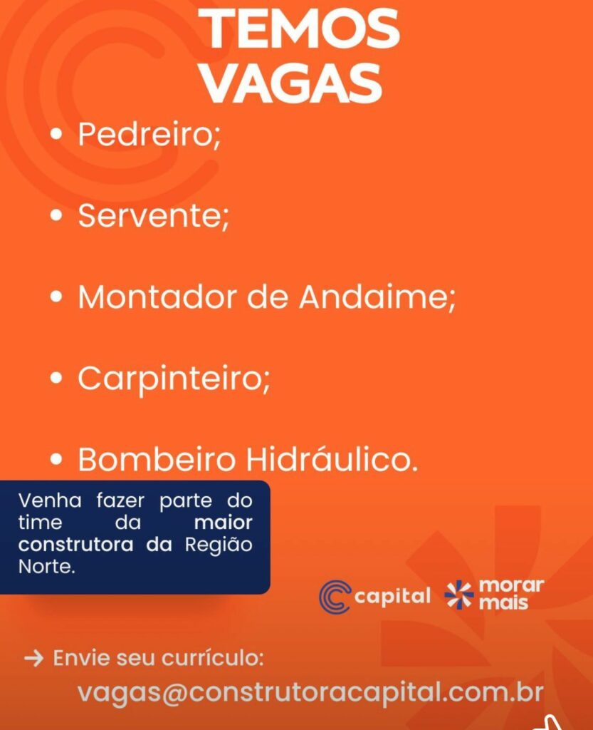 Construtora seleciona Pedreiro, Servente, Montador de Andaime, Carpinteiro, Bombeiro hidráulico; Envie seu currículo!