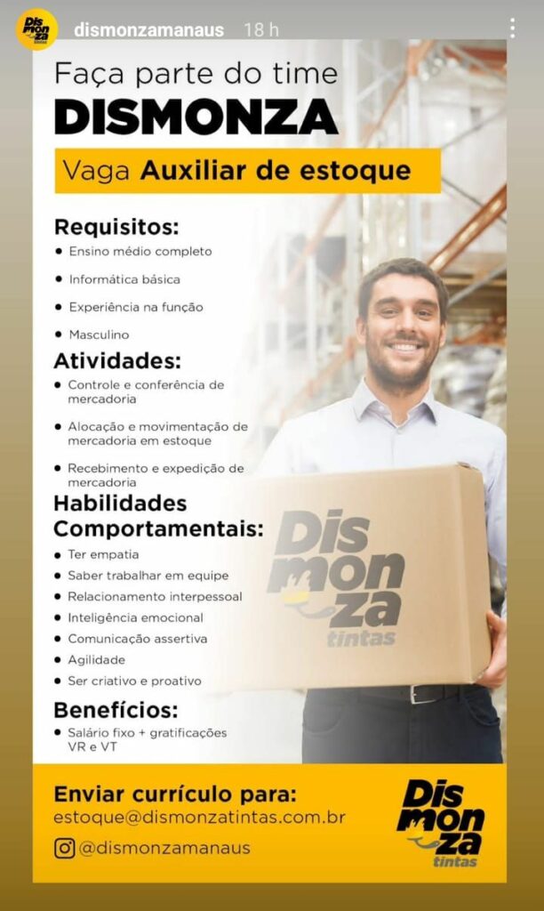 Dismonza tintas seleciona Auxiliar de estoque; Envie seu currículo!