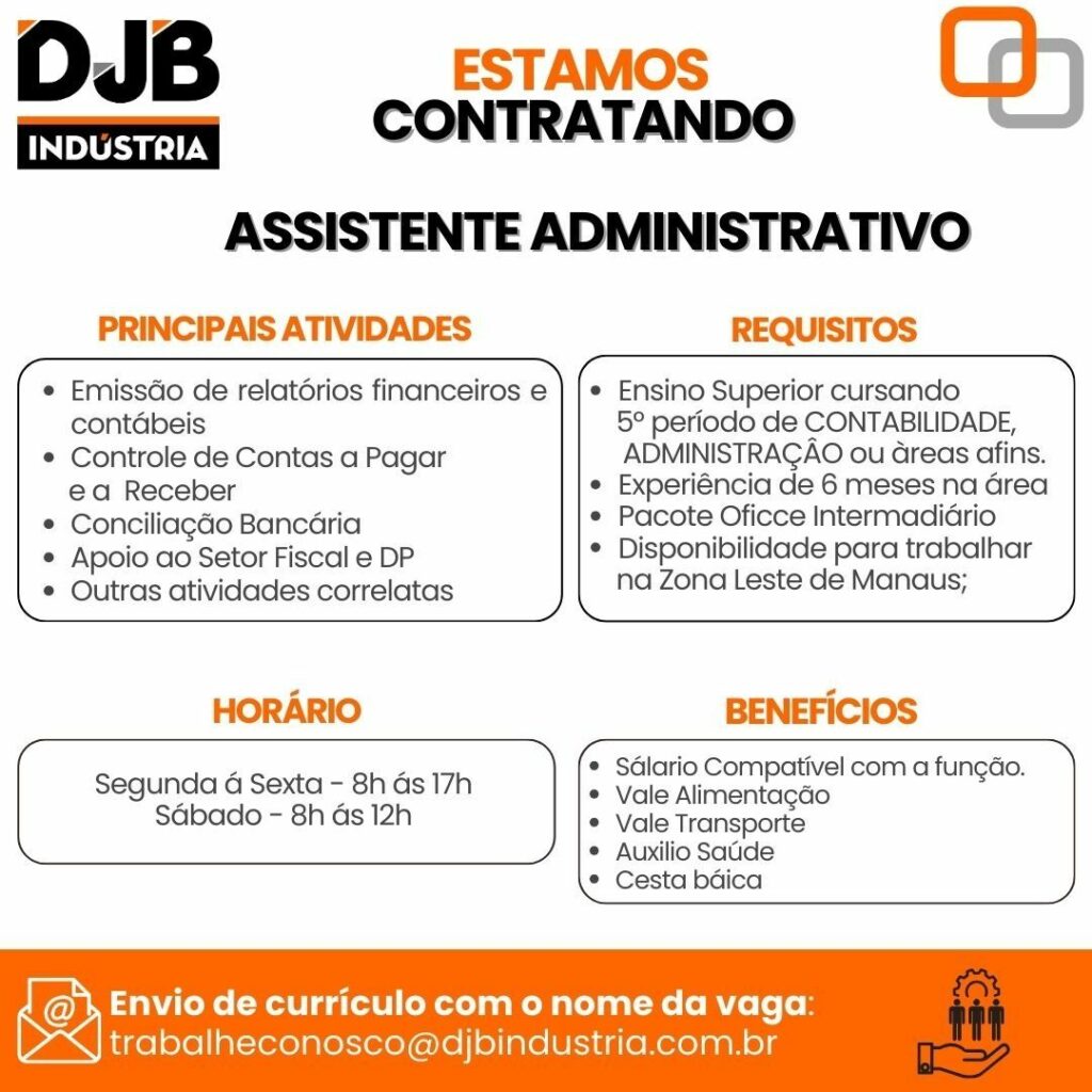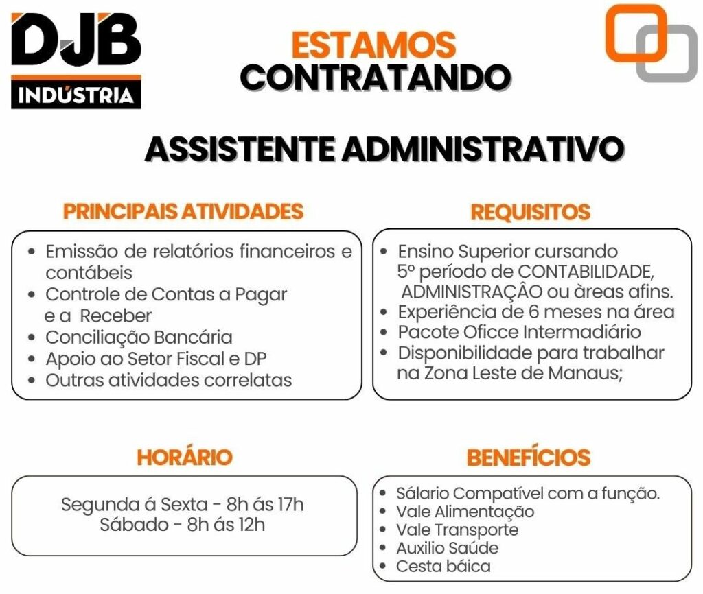 DJB Indústria seleciona Assistente administrativo; Envie seu currículo!
