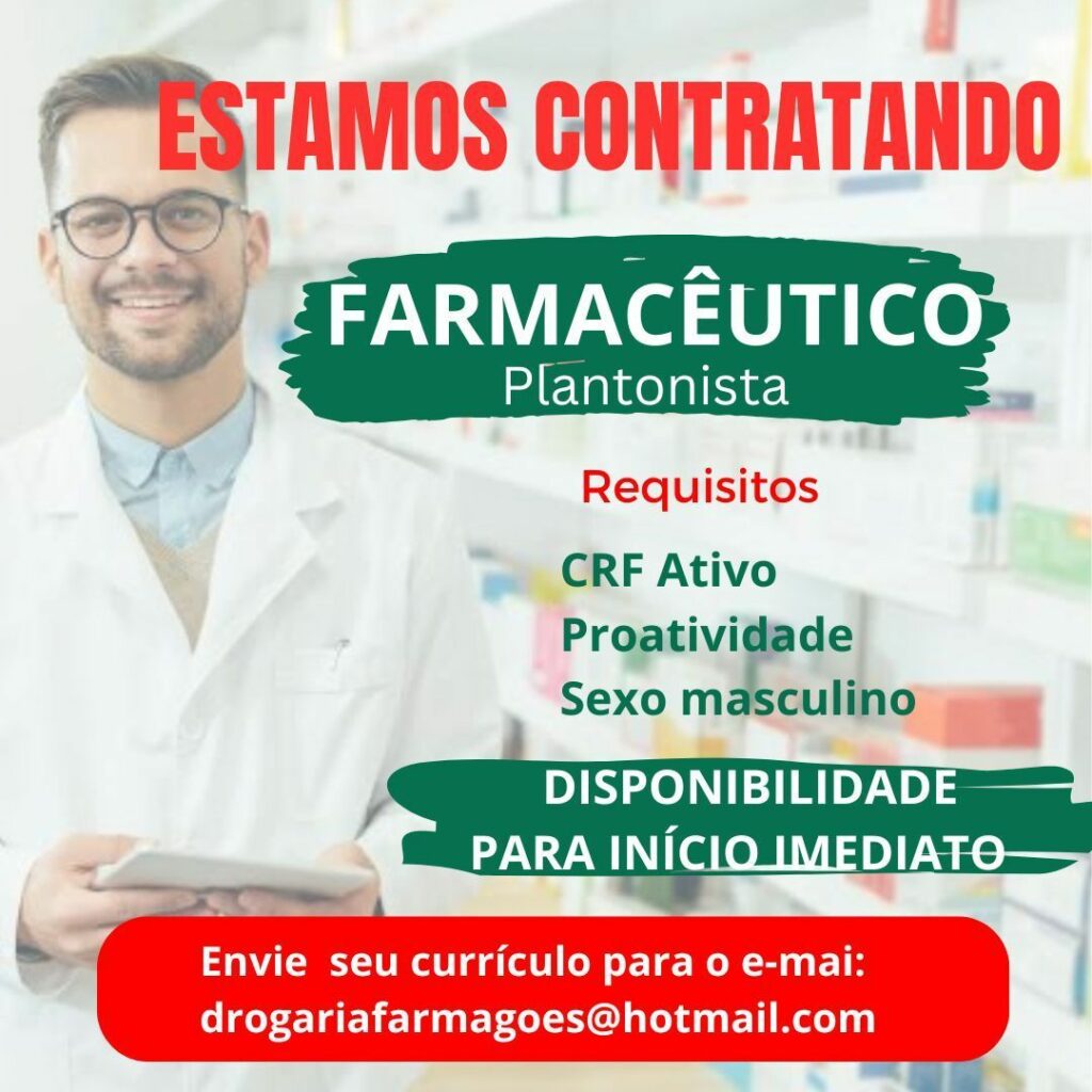 Drogaria está selecionando Farmacêutico plantonista; Envie seu currículo!