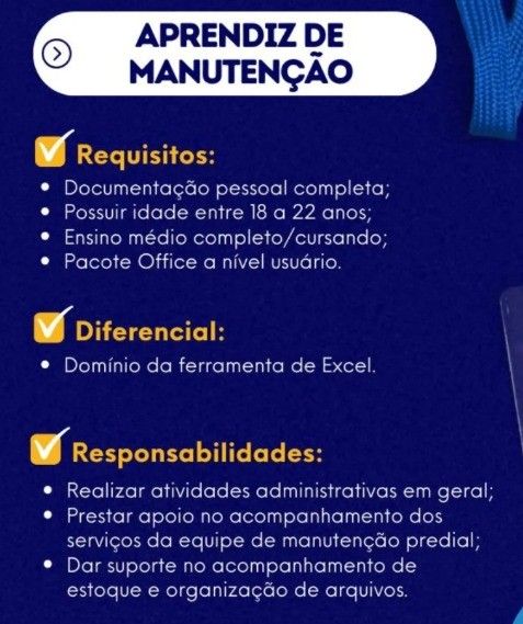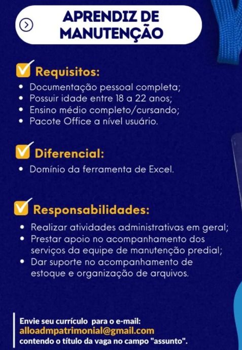 Empresa está selecionando Aprendiz de Manuntenção; Envie seu currículo!