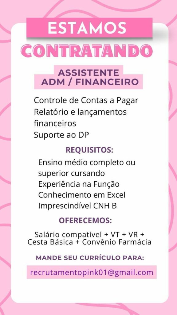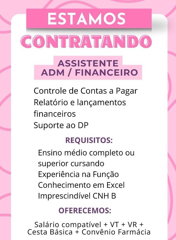 Empresa está selecionando Assistente adm / financeiro; Envie seu currículo!