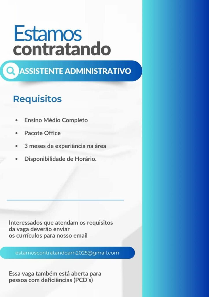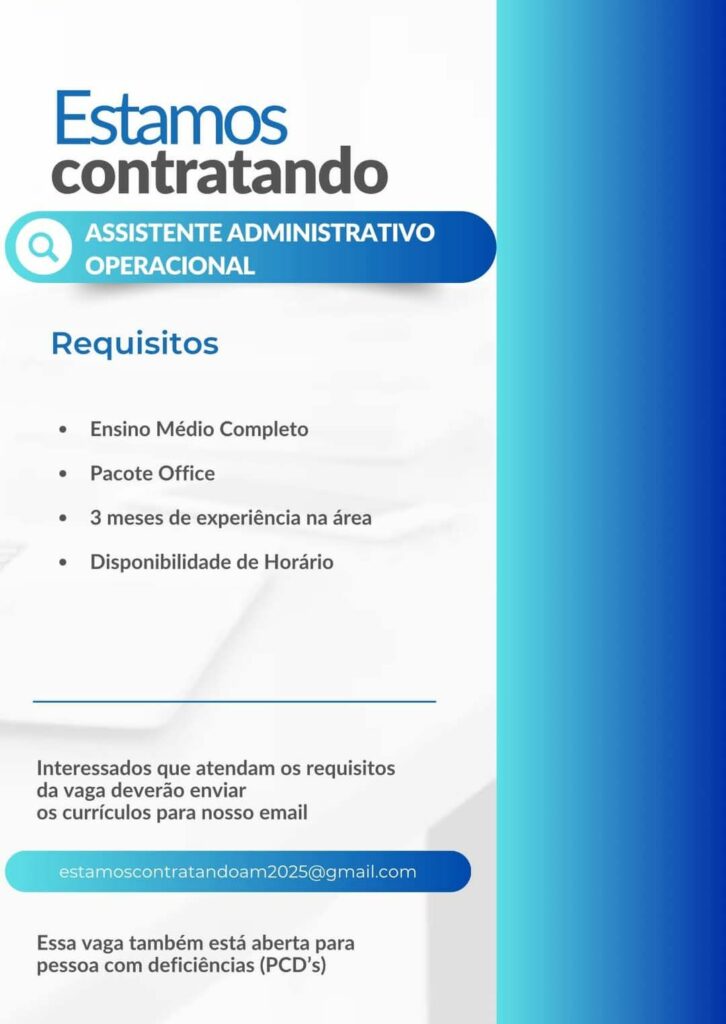 Empresa está selecionando Assistente administrativo Operacional, Assistente administrativo; Envie seu currículo!