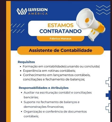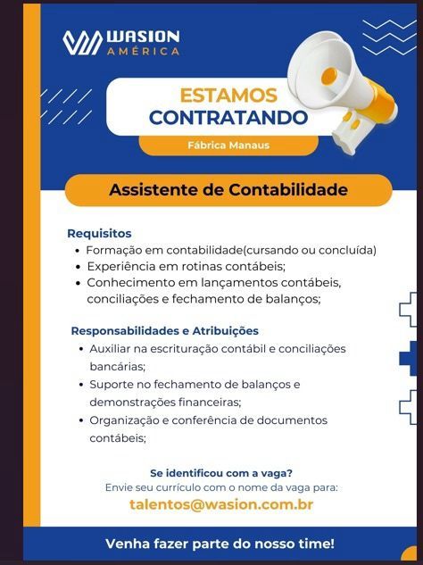 Empresa está selecionando Assistente de contabilidade; Envie seu currículo!
