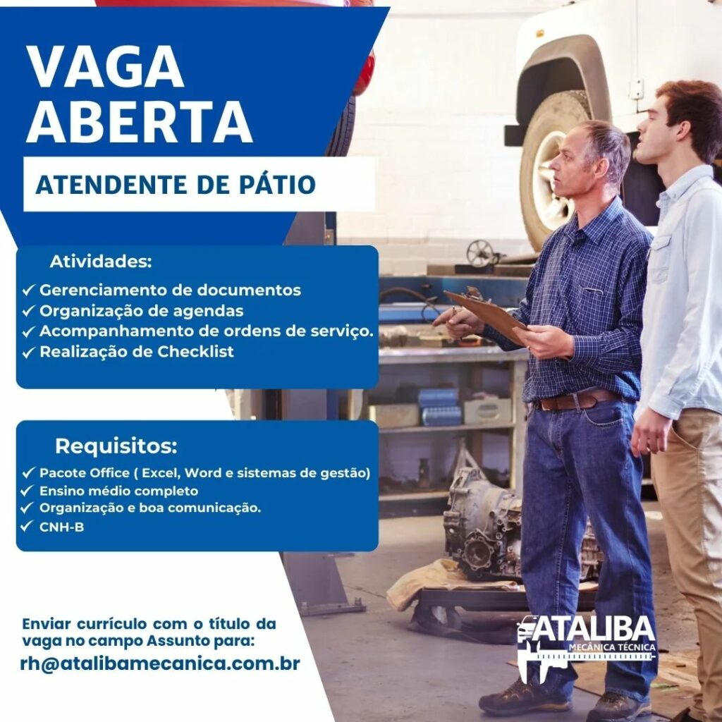 Empresa está selecionando Atendente de pátio; Envie seu currículo!
