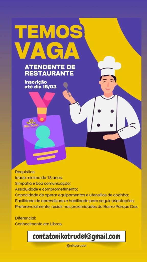 Empresa está selecionando Atendente de restaurante; Envie seu currículo!