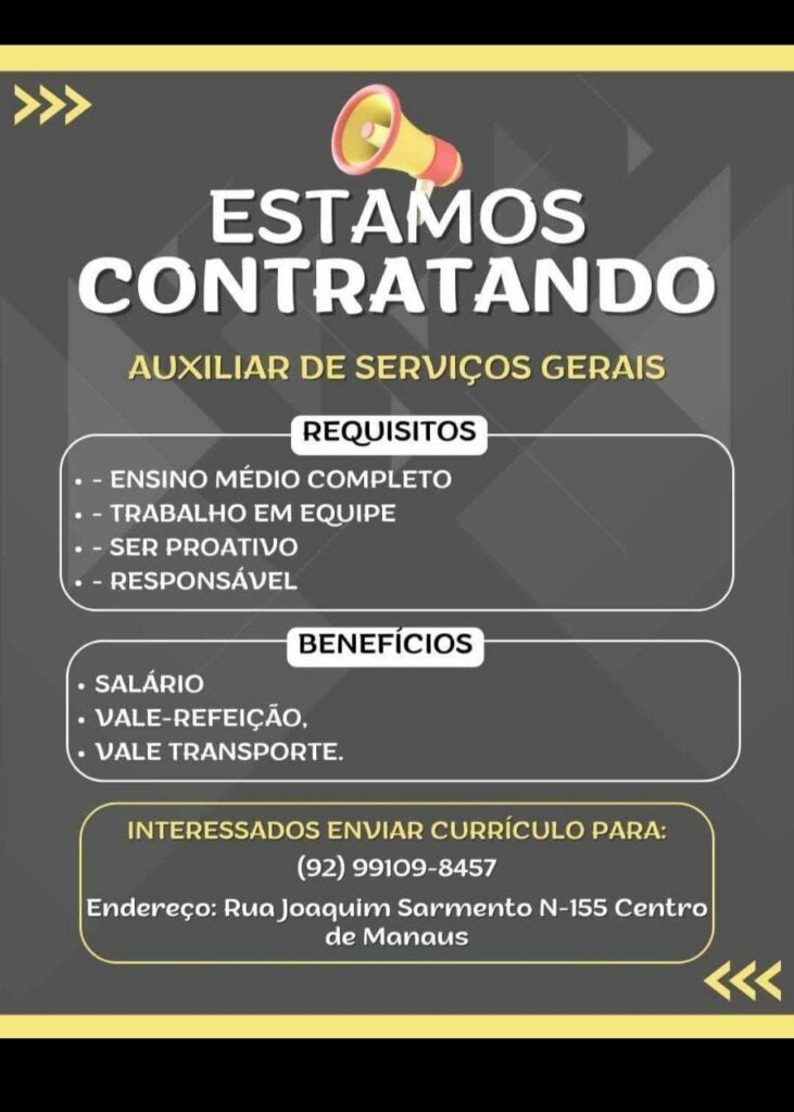 • Hospital Santa Júlia abre vaga para maqueiro em Manaus
