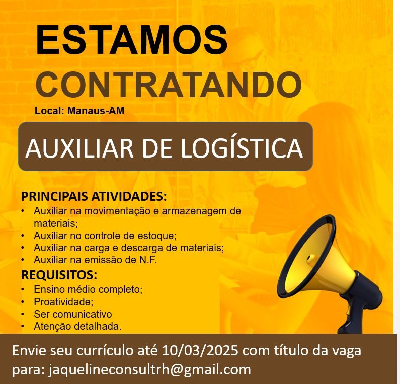 Empresa está selecionando Auxiliar de logística; Envie seu currículo!