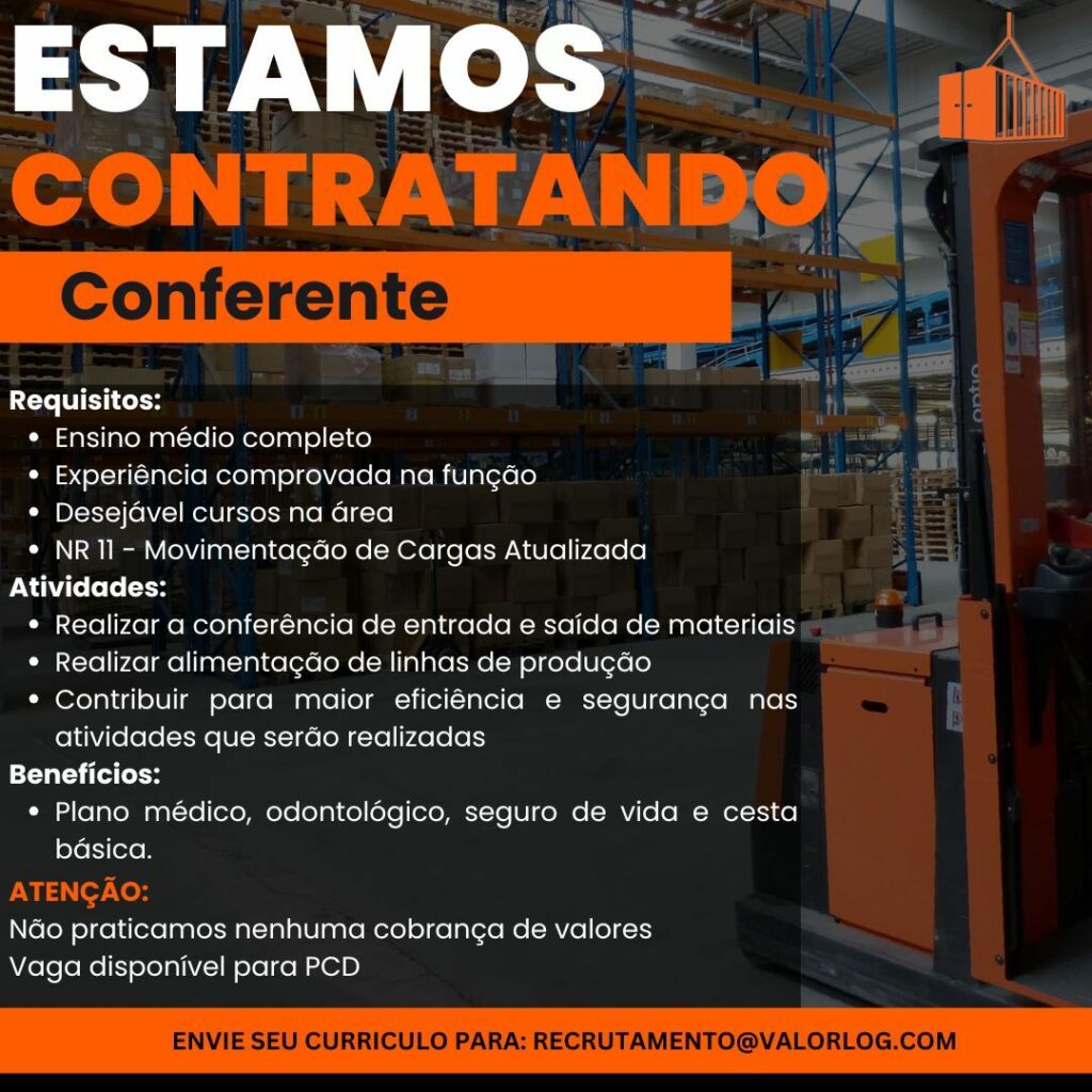 Empresa está selecionando Conferente, Operador logístico, Encarregado logístico, Almoxarife; Envie seu currículo!
