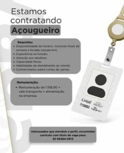 Empresa está selecionando Copeiro, Açougueiro; Envie seu currículo!
