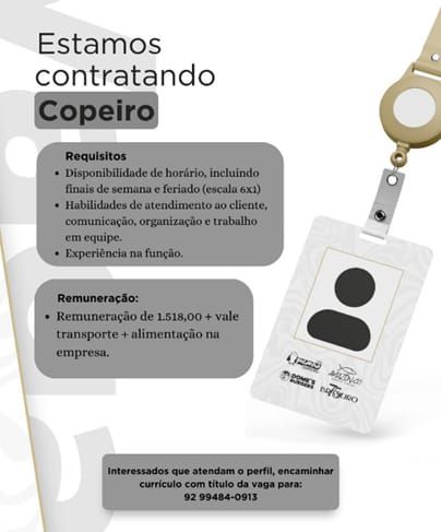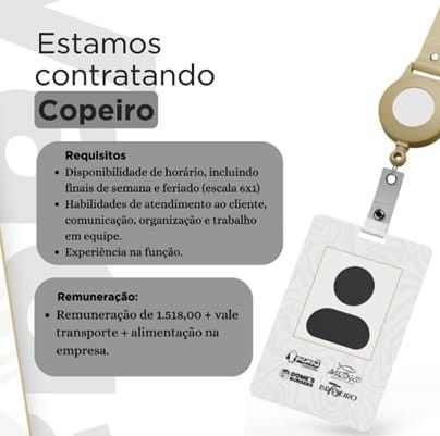 O processo seletivo para esta(s) vaga(s) não cobra absolutamente nada pela sua candidatura. Portanto, jamais aceite qualquer tipo de cobrança para cadastrar seu currículo.