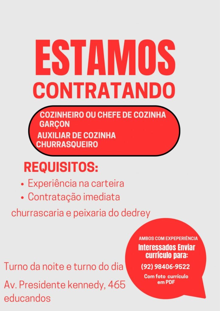 Empresa está selecionando Cozinheiro ou chefe de cozinha, Garçon, Auxiliar de cozinha, Churrasqueiro; Envie seu currículo!