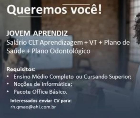 Empresa está selecionando Jovem Aprendiz; Envie seu currículo!