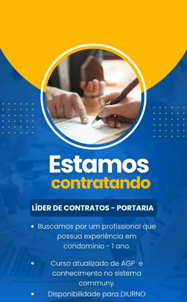 Empresa está selecionando Líder de contratos portaria; Envie seu currículo!