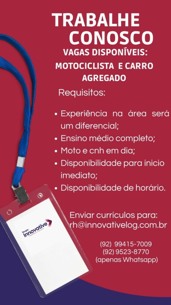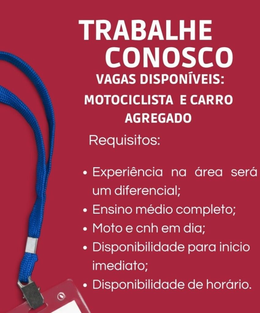 Empresa está selecionando Motociclista e carro agregado; Envie seu currículo!