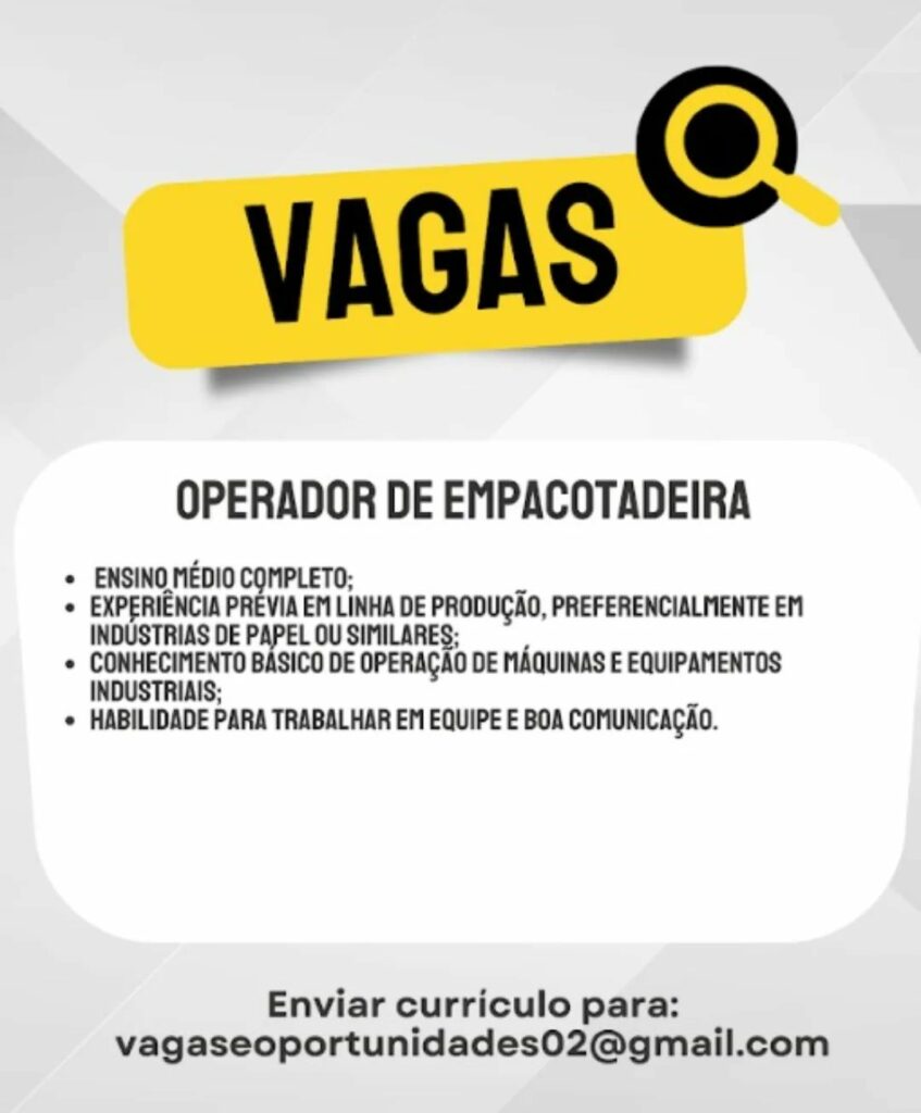 Empresa está selecionando Operador de empacotadeira; Envie seu currículo!