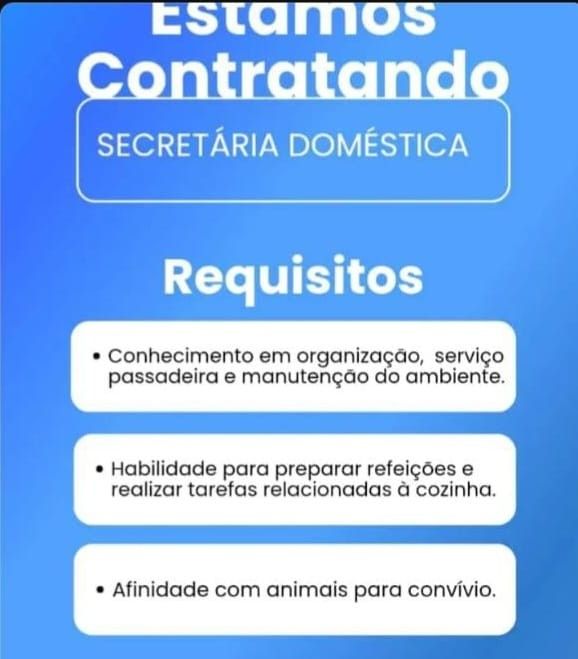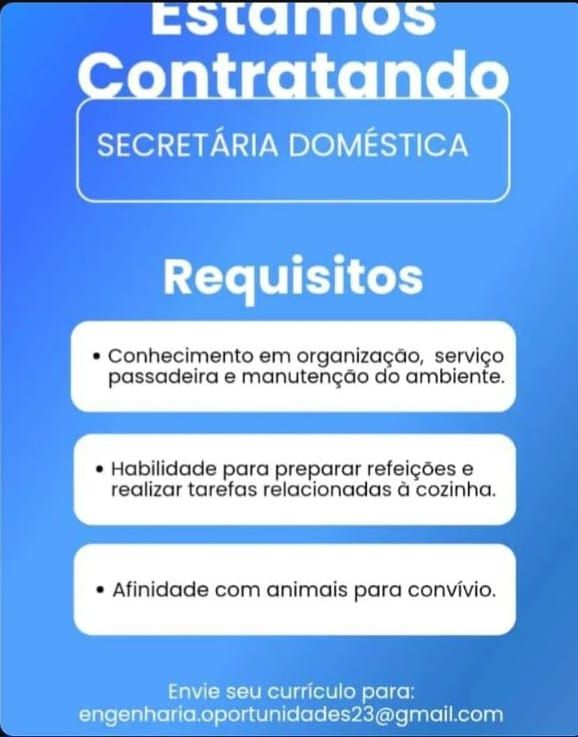 Empresa está selecionando Secretária doméstica; Envie seu currículo!