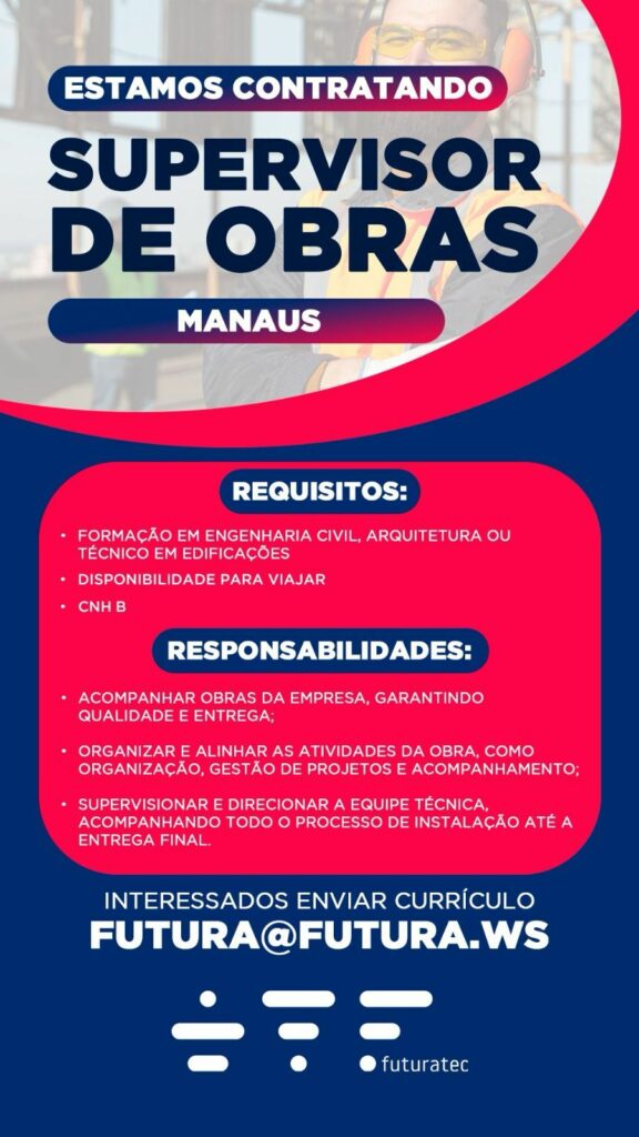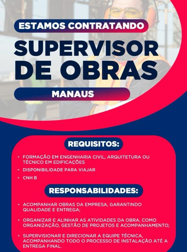 Empresa está selecionando Supervisor técnico, Supervisor de obras; Envie seu currículo!