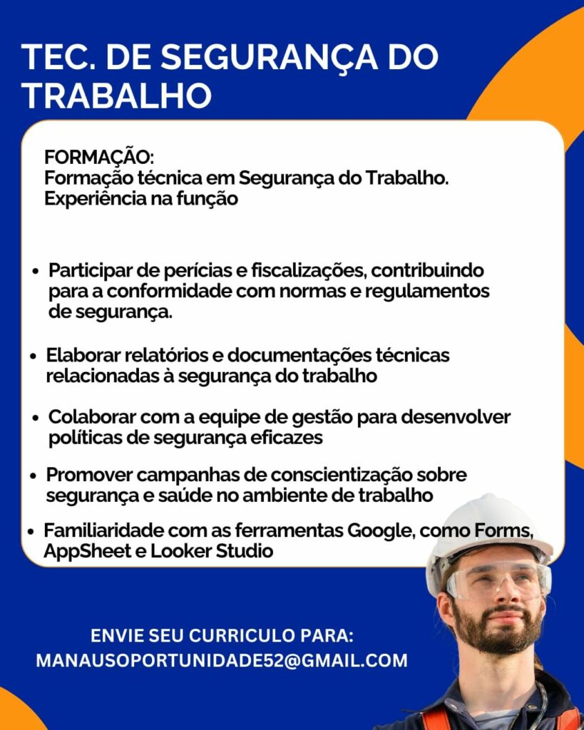 Empresa está selecionando Técnico de segurança do trabalho; Envie seu currículo!