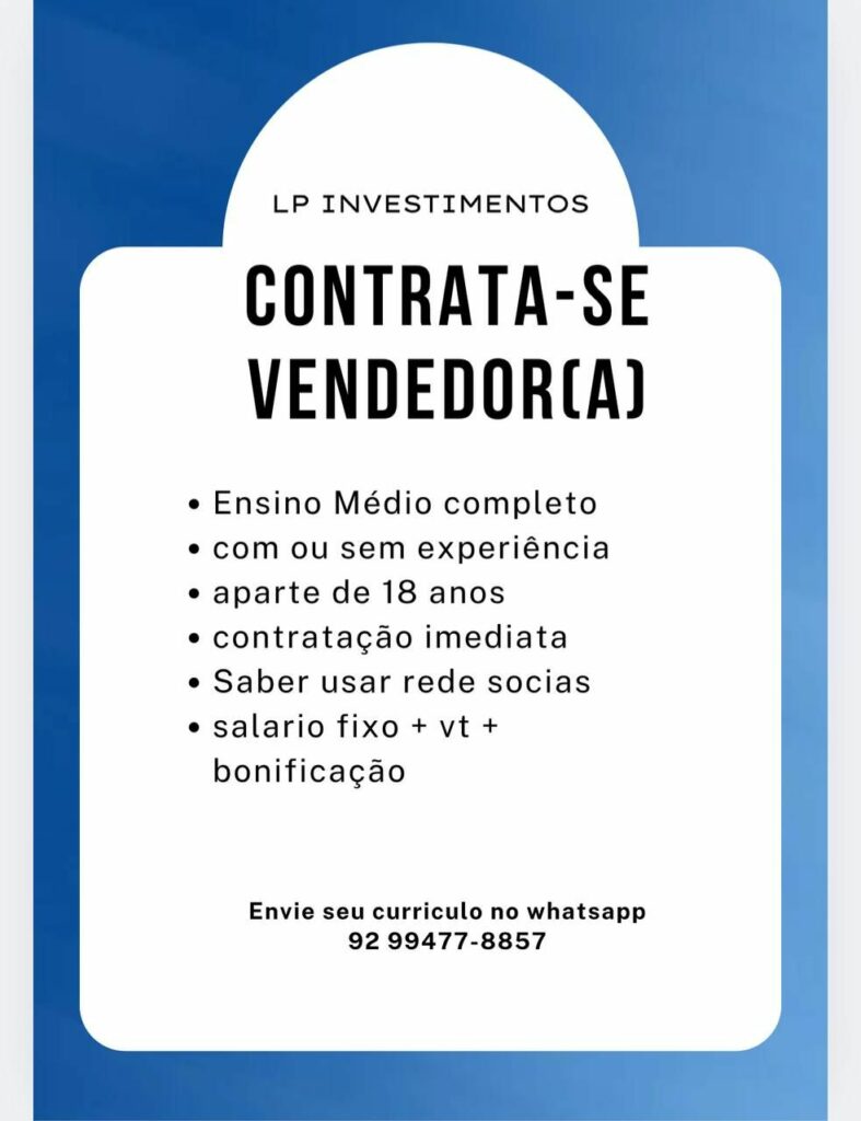 Empresa está selecionando Vendedor (a); Envie seu currículo!