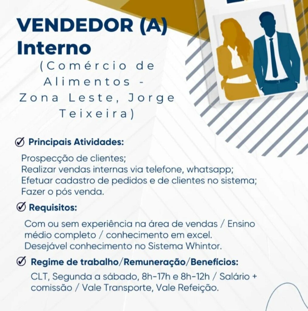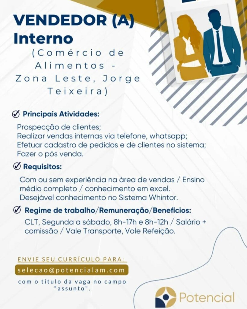 Empresa está selecionando Vendedor (a) interno; Envie seu currículo!