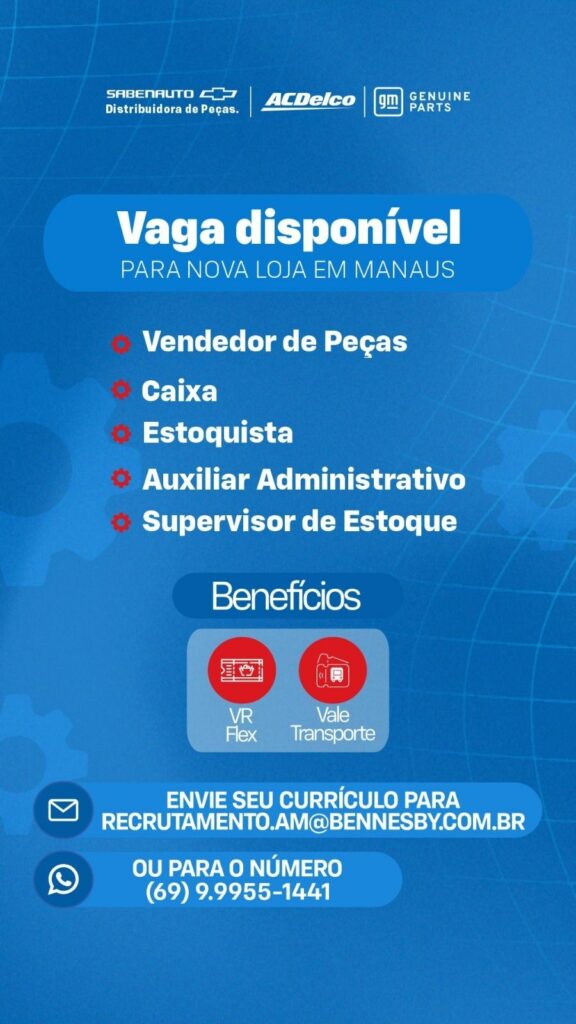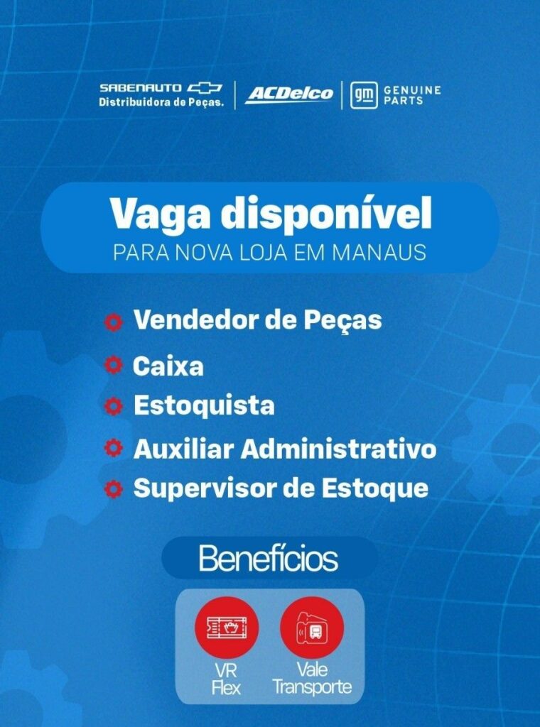 Empresa está selecionando Vendedor de peças, Caixa, Estoquista, Auxiliar administrativo, Supervisor de estoque; Envie seu currículo!