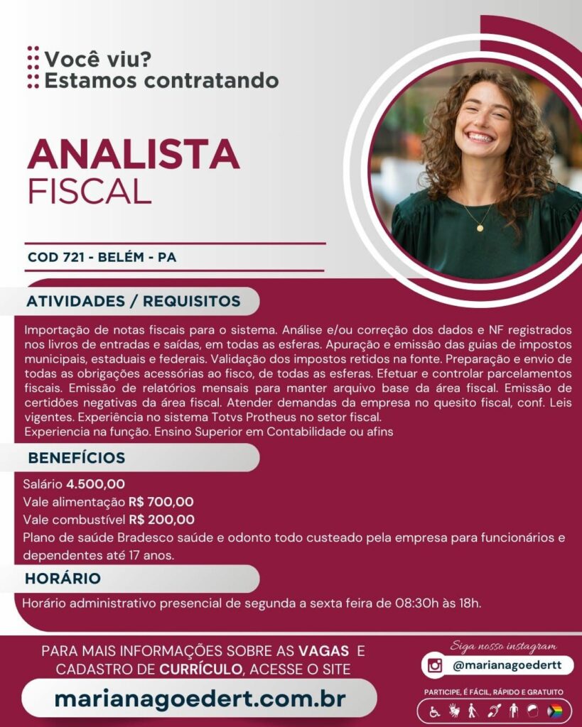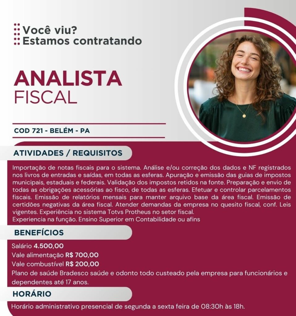 Empresa seleciona Analista fiscal; Envie seu currículo!