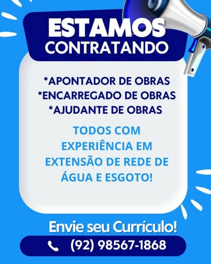 Empresa seleciona Apontador de obras, Encarregado de Obras, Ajudante de obras; Envie seu currículo!