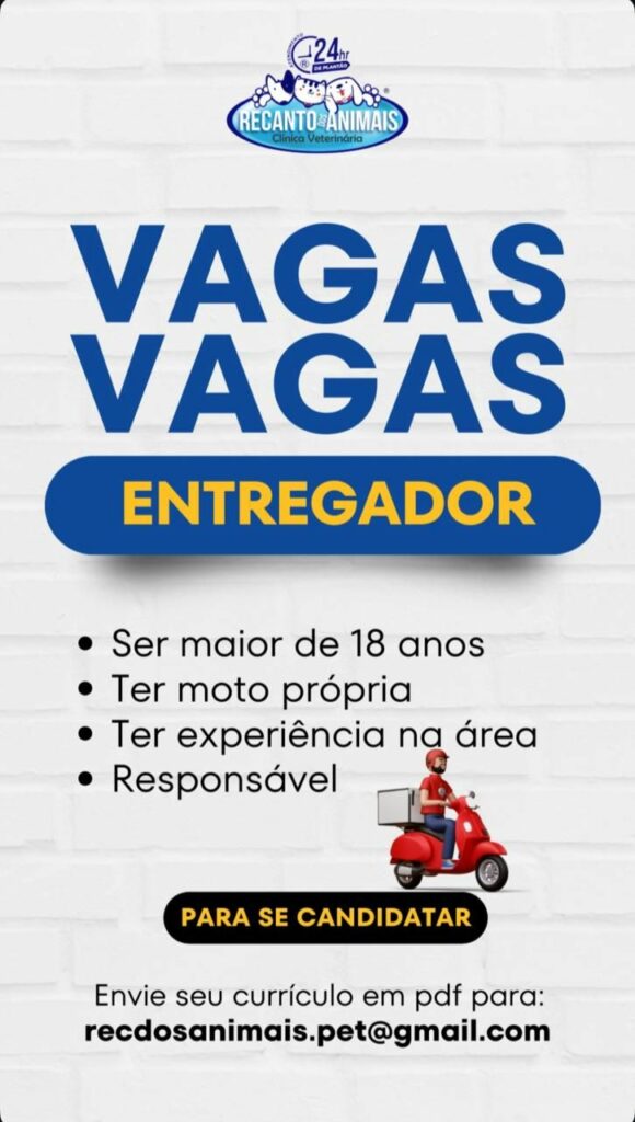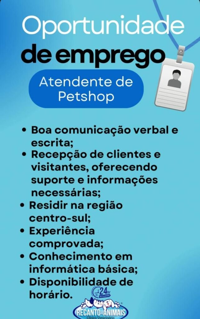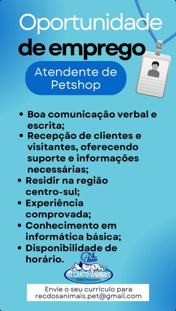 Empresa seleciona Atendente de pet Shop, Médico veterinário, Entregador; Envie seu currículo!