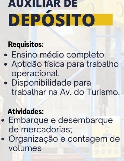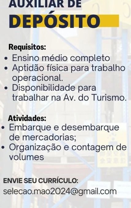 Empresa seleciona Auxiliar de depósito; Envie seu currículo!