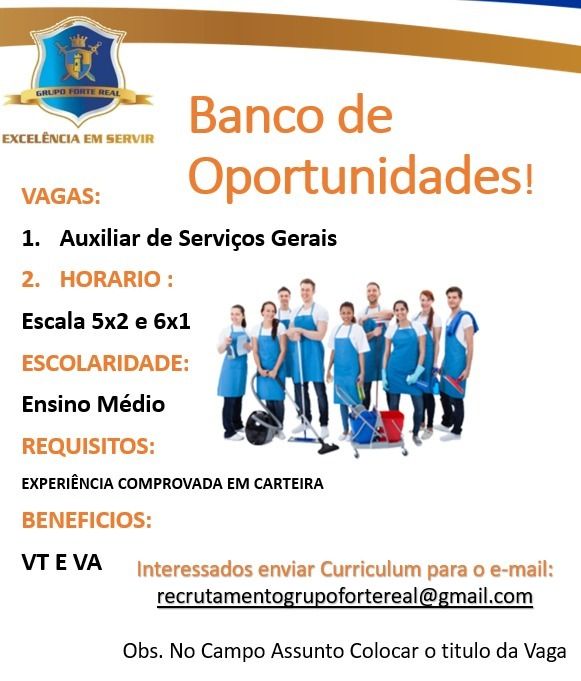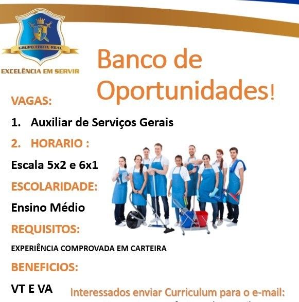 Empresa seleciona Auxiliar de serviços gerais; Envie seu currículo!