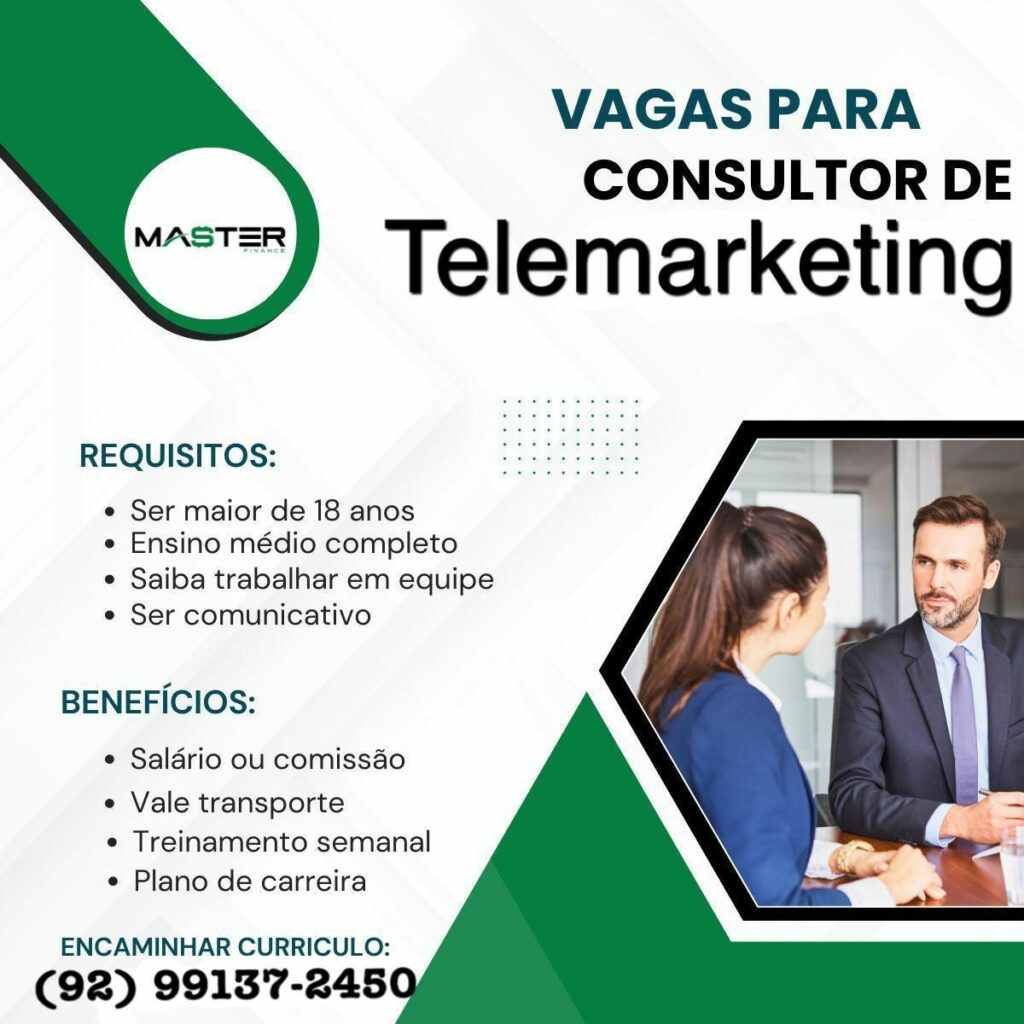 Empresa seleciona Consultor de telemarketing; Envie seu currículo!