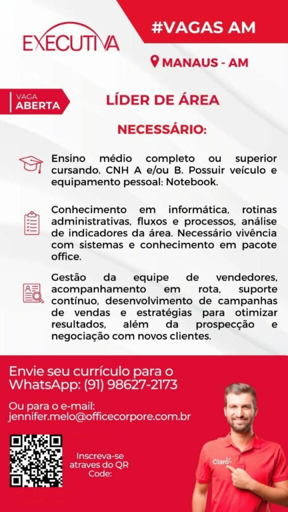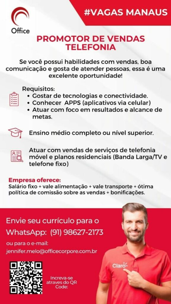 Empresa seleciona Líder de área, Vendedor externo, Promotor de vendas telefonia; Envie seu currículo!