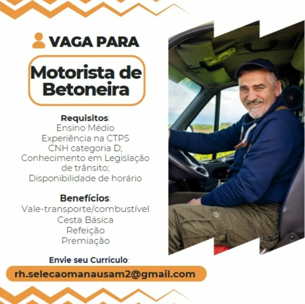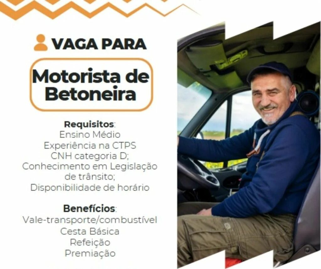 Empresa seleciona Motorista de Betoneira; Envie seu currículo!