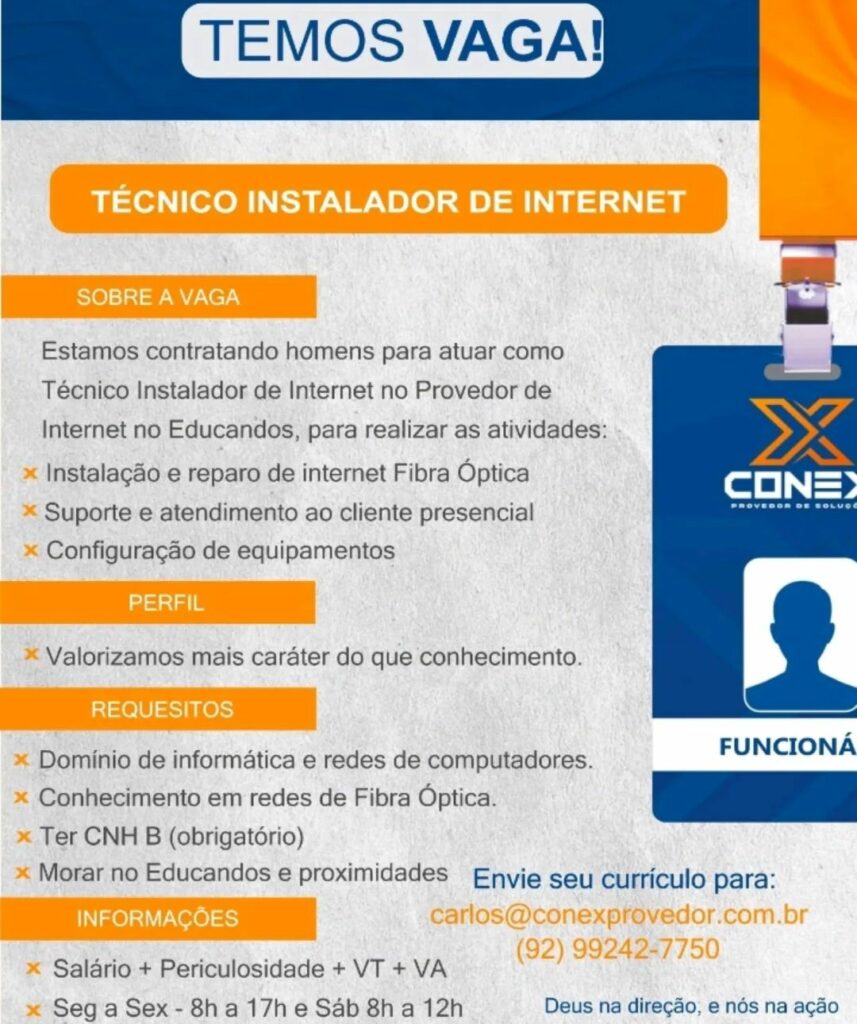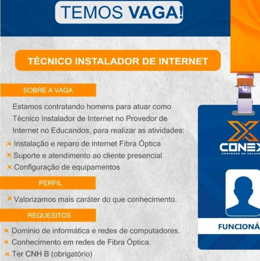 Empresa seleciona para Técnico Instalador de Internet; Envie seu currículo!