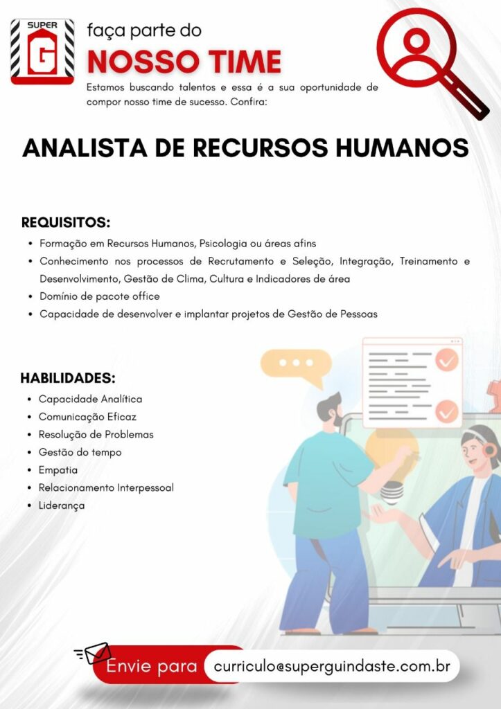 Empresa seleciona para vaga de Analista de Recursos Humanos; Envie seu currículo!