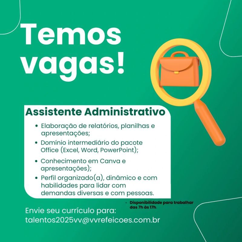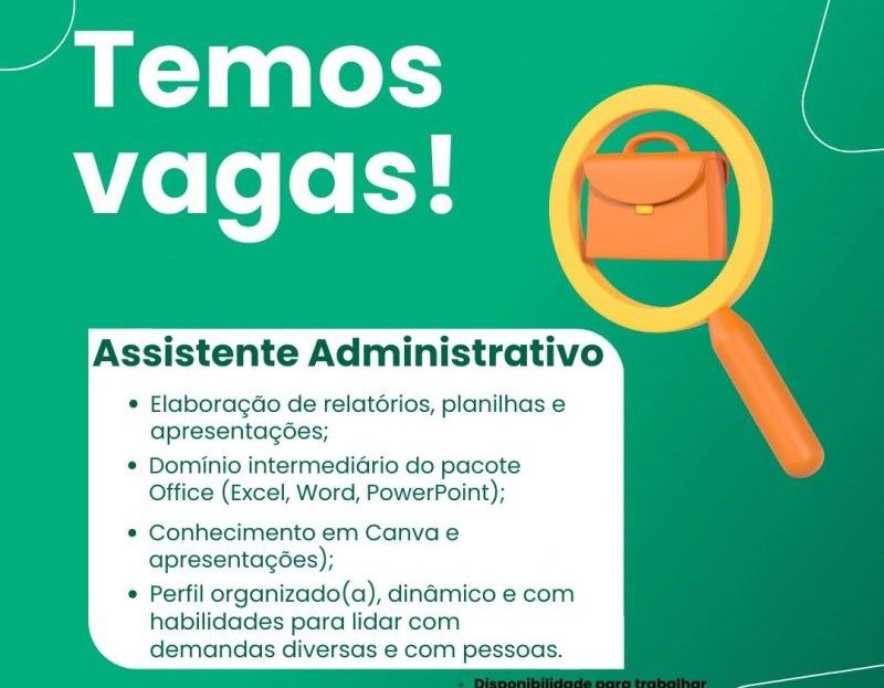 Empresa seleciona para vaga de Assistente Administrativo; Envie seu currículo!