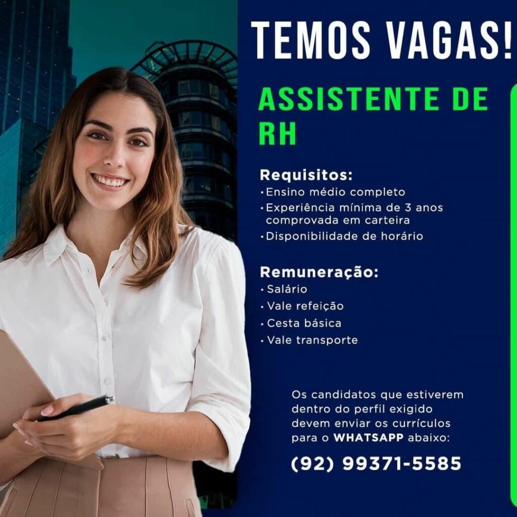 Empresa seleciona para vaga de Assistente de rh; Envie seu currículo!