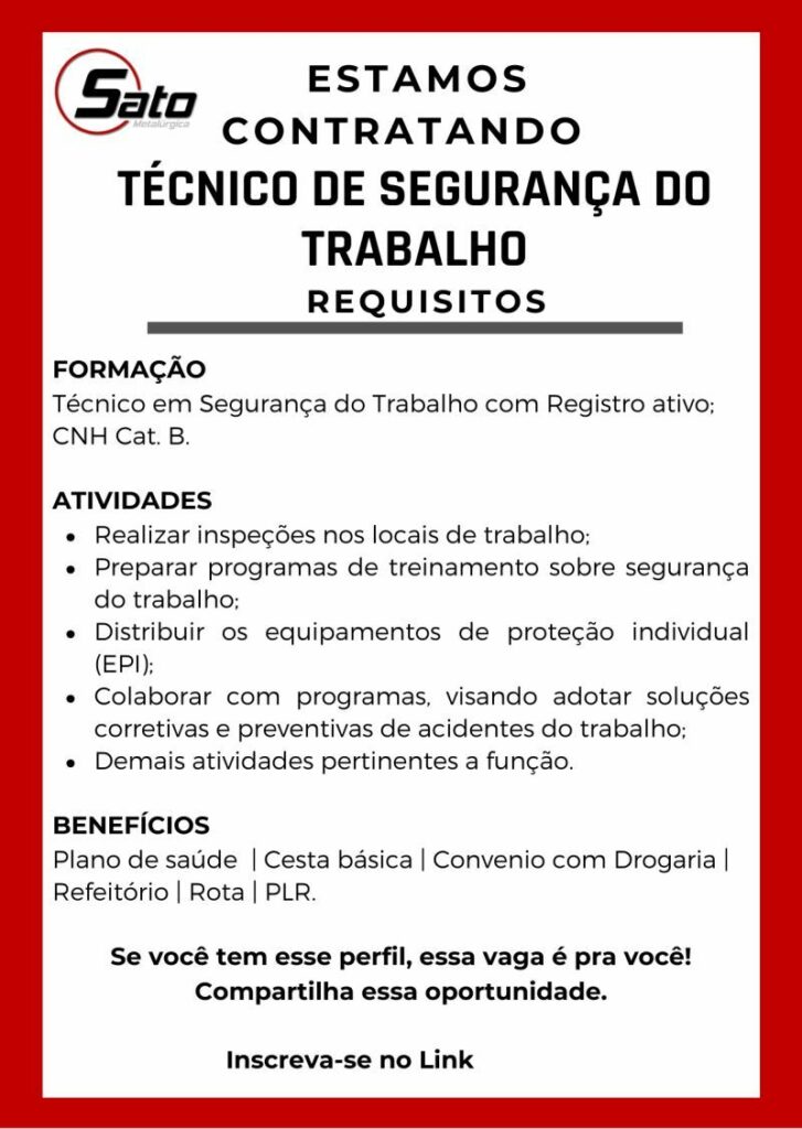 Empresa seleciona para vaga de Técnico de segurança do trabalho; Envie seu currículo!