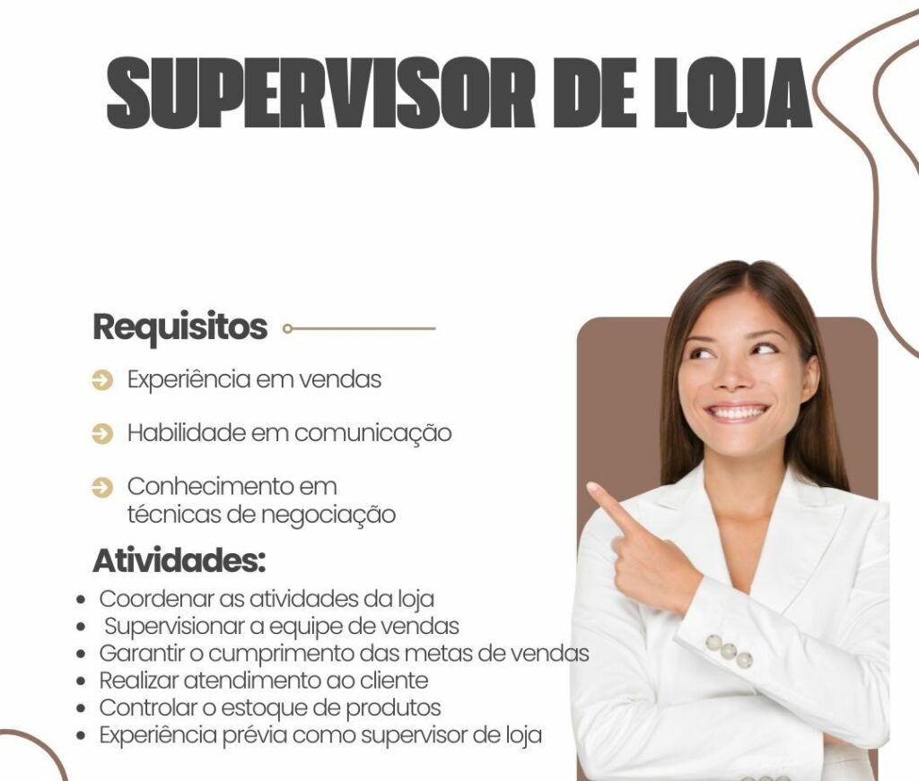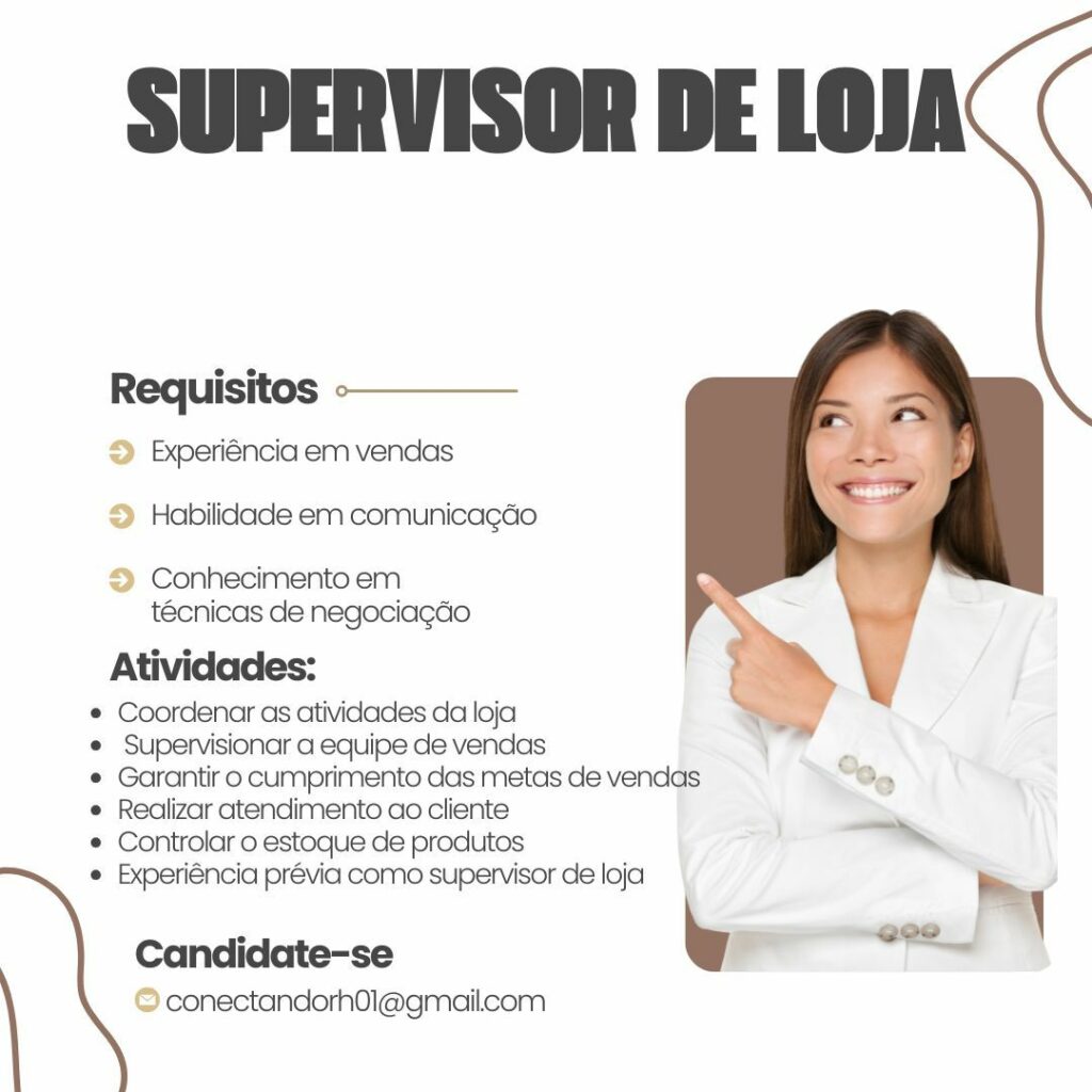 Empresa seleciona Supervisor de Loja; Envie seu currículo!