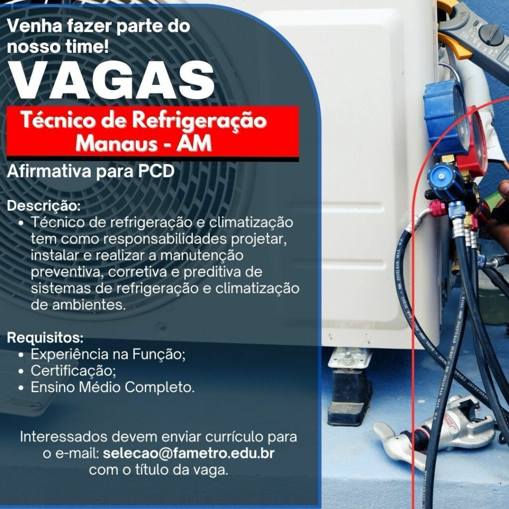 Empresa seleciona Técnico de refrigeração; Envie seu currículo!
