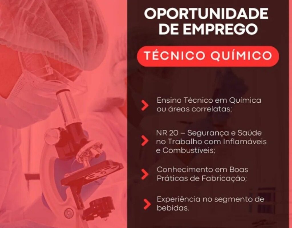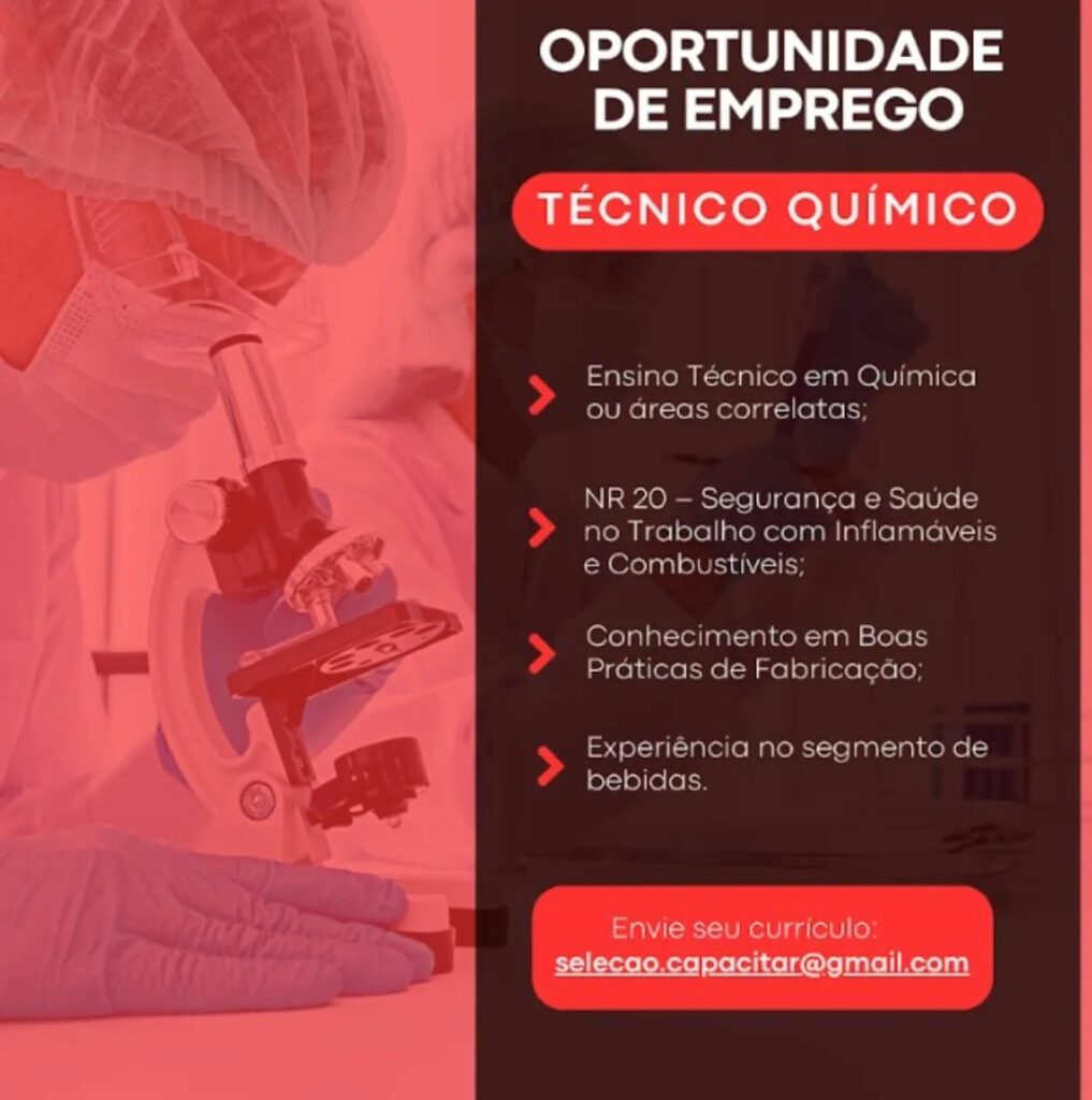 Empresa seleciona Técnico químico; Envie seu currículo!