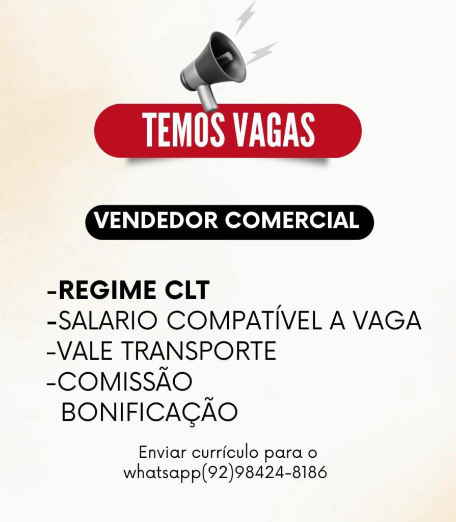 Empresa seleciona Vendedor comercial; Envie seu currículo!