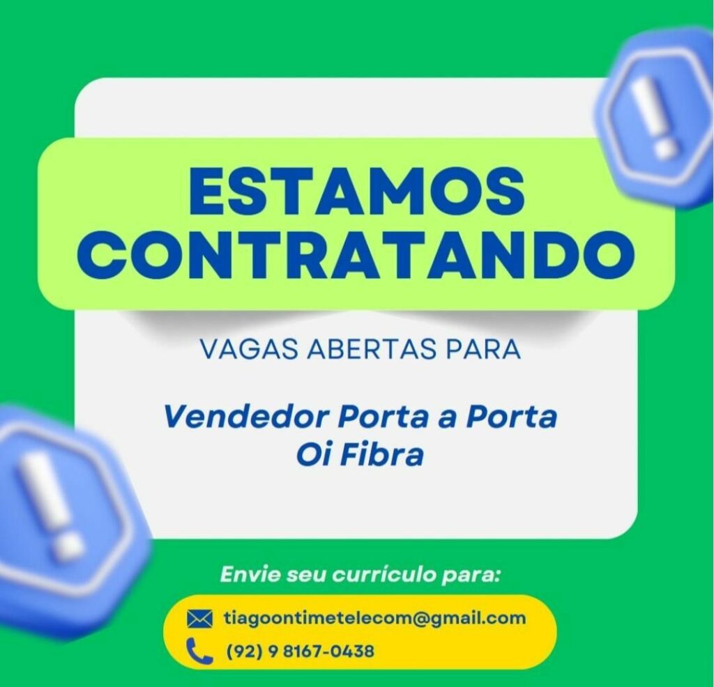 Empresa seleciona Vendedor porta a porta Oi fibra; Envie seu currículo!
